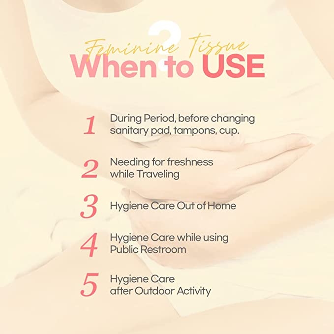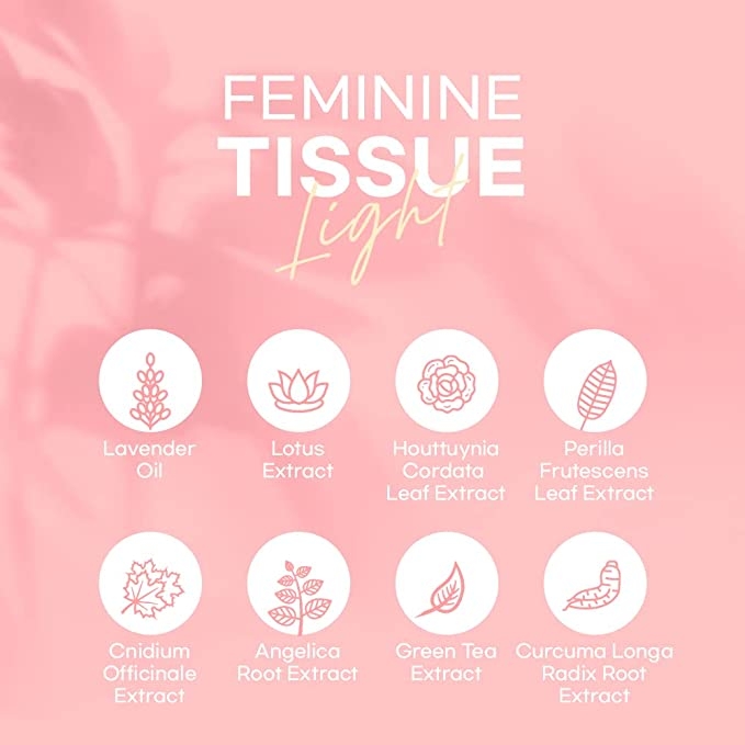 ㆍThese lavender scented, embossed feminine tissue help in moisturizing and maintaining the ph level of intimate area.