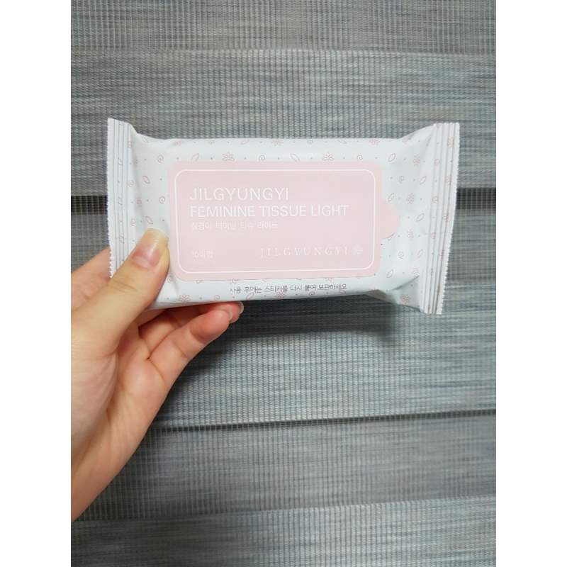 There are 10 sheets in 1 packGreat to use!! In fact, when I use it, it is always convenient to carry it in my bag, and it is less uncomfortable even when I go to a public toilet, so Jilgyeungyi that I use oftenFeminine Tissue Light. It's inconvenient to take the whole feminine wash with you when you travel. I think it would be good to use it then.